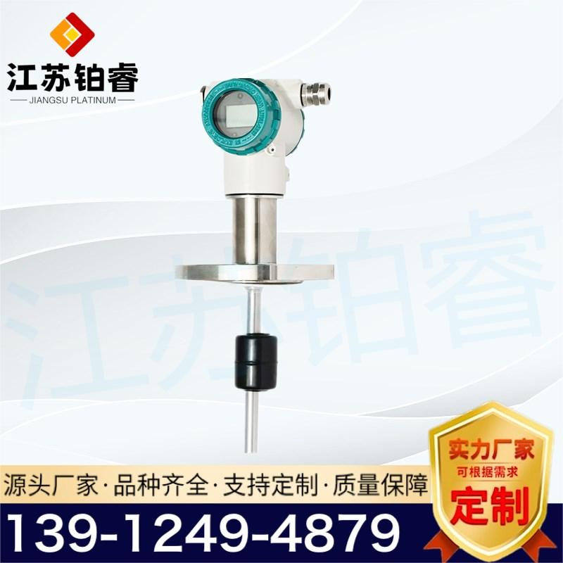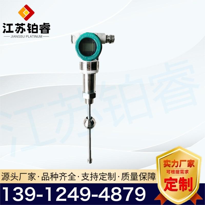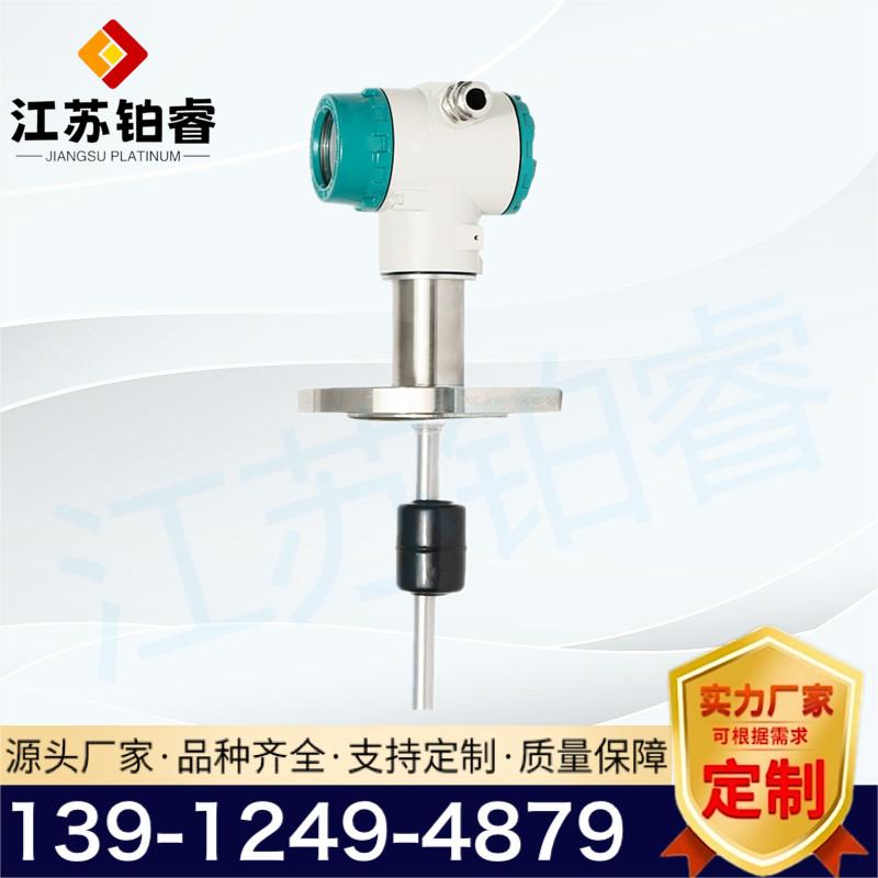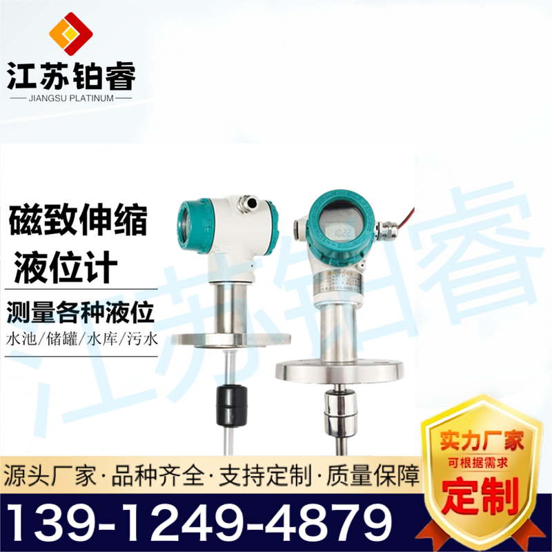 磁致伸缩液位计由三个主要部分组成。外管部分是耐腐蚀,耐工业恶劣环境的产品材料。变送器的核心部分是*内核的波导管,它是由一定的磁致伸缩物质构成。变送器的电子部分产生一个低电流的询问脉冲,该脉冲同时产生一个磁场,并沿波导管向下传播。当该磁场和波导管上的浮子内的永磁体所产生的磁场相交时,就会产生一个应变脉冲,或叫波导扭曲。应变脉冲沿波导管返回并被电子单元所接收,通过**测量询问脉冲和返回脉冲之间的时间间隔,可获得高精度、高重复性的液位值。