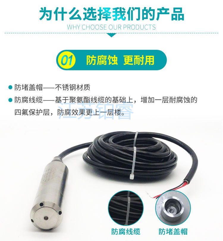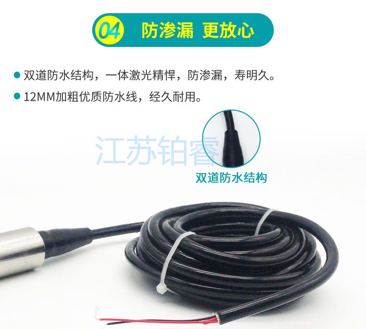 BR-500系列投入式液位计的敏感器件安装在中继箱下端,投人部件为平衡罩,两者之间由导气管(导压)相连,液柱的压力通过空气的传导间接地由导气管传递给敏感部件,这样就避免敏感部器件与被测介质的直接接触。投入式液位计不仅适用于普通水的测量,还适用于高温、粘稠、腐蚀等介质特殊场合的液位测量。广泛适用于化工、冶金、电站、水利、城市供水和工业废水等领域。.