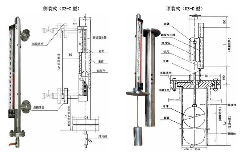 磁翻板液位计,也叫磁翻柱液位计、磁翻珠液位计、磁性液位计、磁浮子液位计、磁浮球液位计等,是根据浮力原理和磁性耦合作用原理工作的。当被测容器中的液位升降时,液位计主导管中的浮子也随之升降,浮子内的**磁钢通过磁耦合传递到现场指示器,驱动红、白翻柱翻转180°,当液位上升时,翻柱由白色转为红色,当液位下降时,翻柱由红色转为白色,指示器的红、白界位处为容器内介质液位的实际高度,从而实现液位的指示。